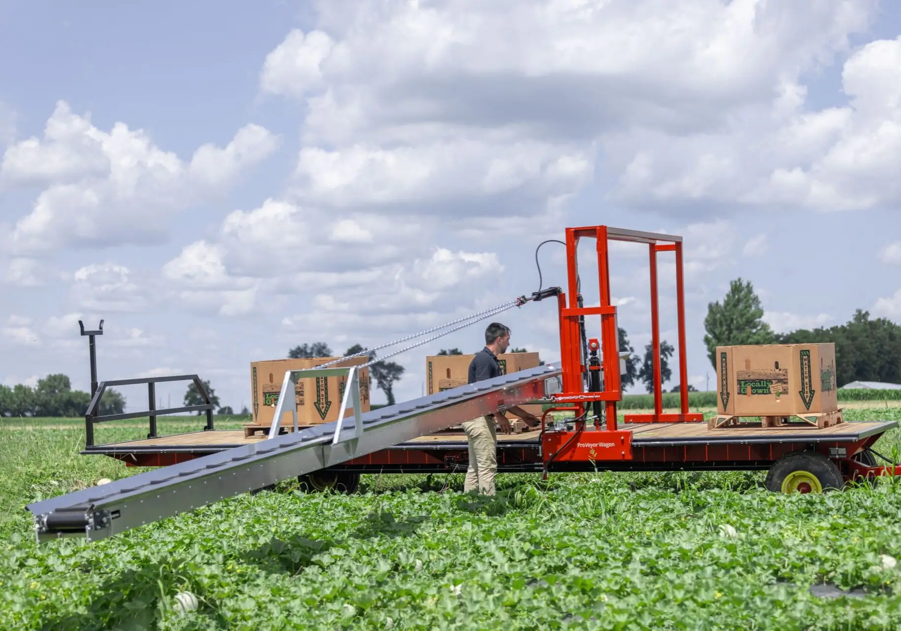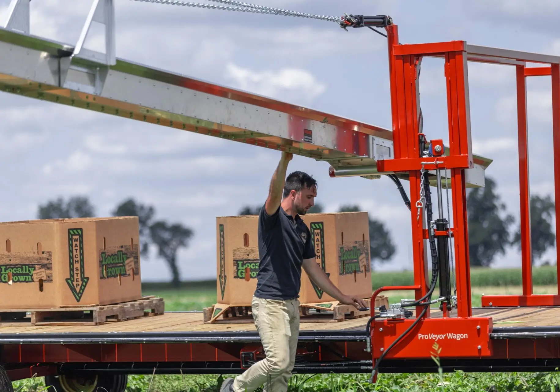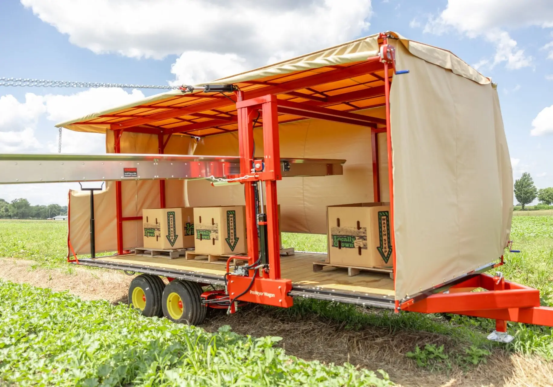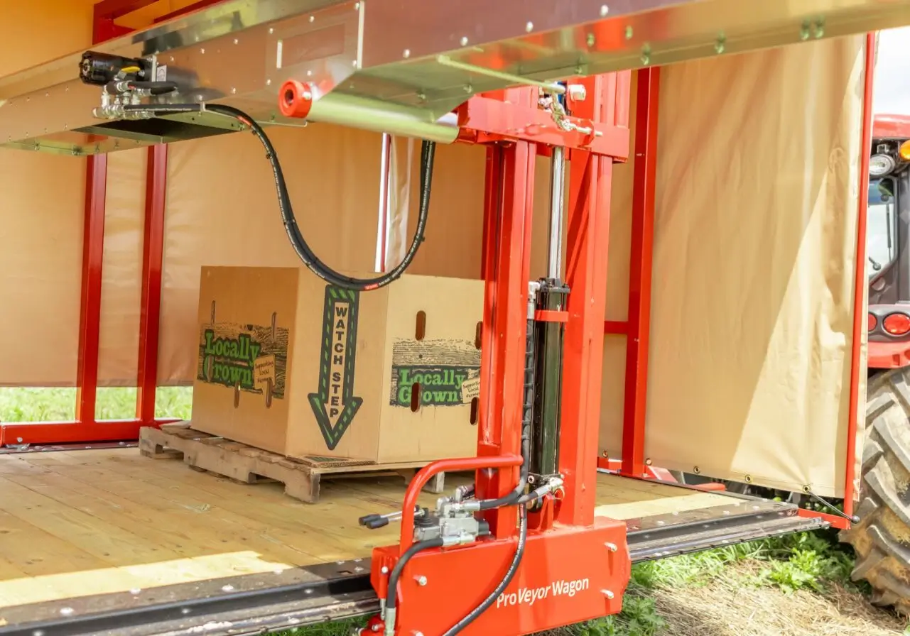 Adjustable conveyer from 14″ – 40″ from wagon bed